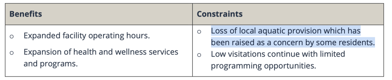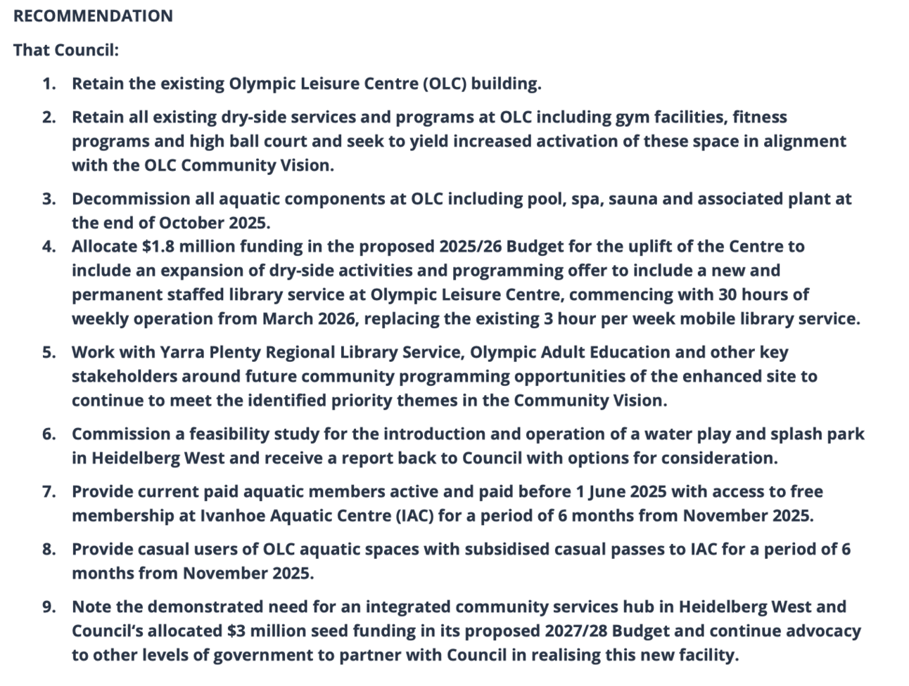 We urge councillors to reject this recommendation, and instead commit to a comprehensive redevelopment of the Olympic Leisure Centre including aquatic facilities.